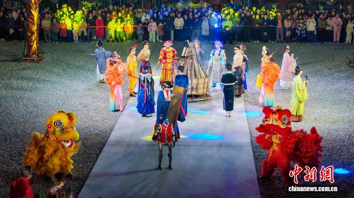 湖北荆州:民俗巡游闹新春 篝火晚会点亮老街年味