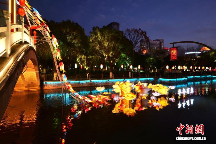 (新春走基层)浙江湖州霅溪灯影秀点亮 吸引市民游客打卡