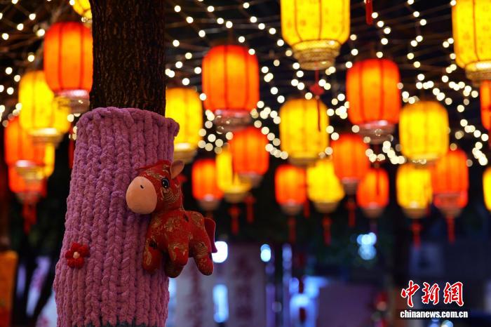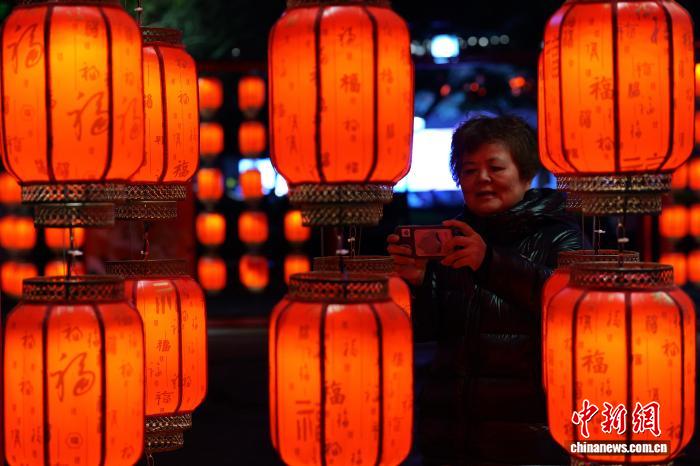 2月19日,市平易近拍摄献岁灯笼。中新社记者 钱朝菲 摄