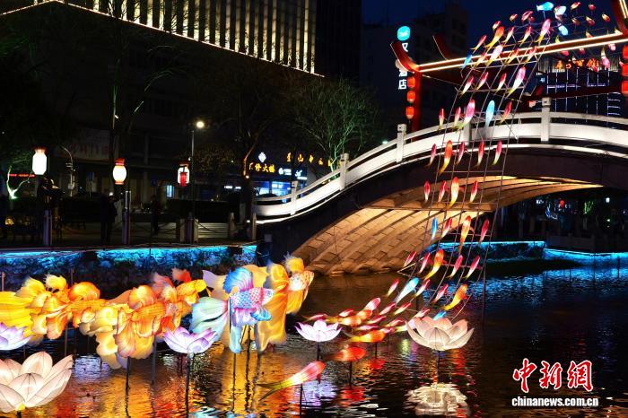 2月19日,“年年有鱼”焦点花灯面明。中新社记者 钱朝菲 摄