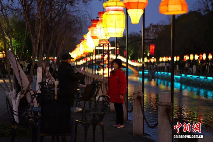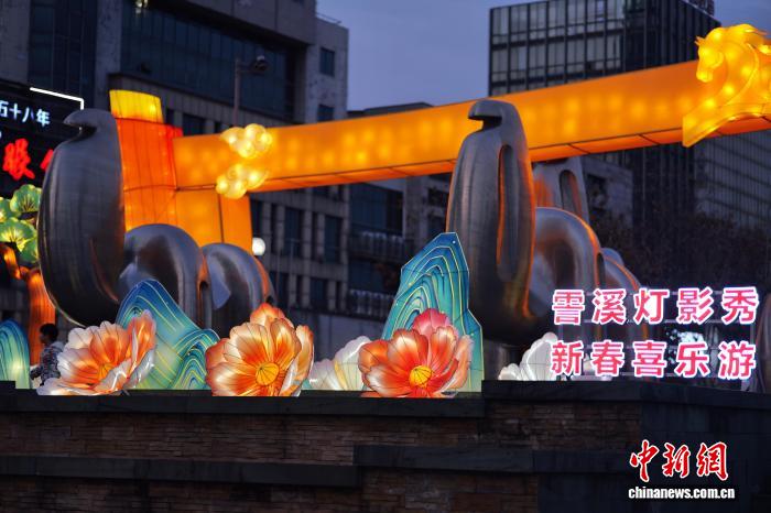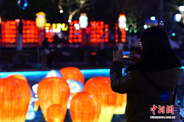 2月19日,市平易近挨卡灯影秀。中新社记者 钱朝菲 摄