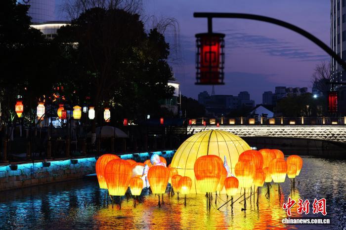 2月19日,霅溪灯影秀面明。中新社记者 钱朝菲 摄