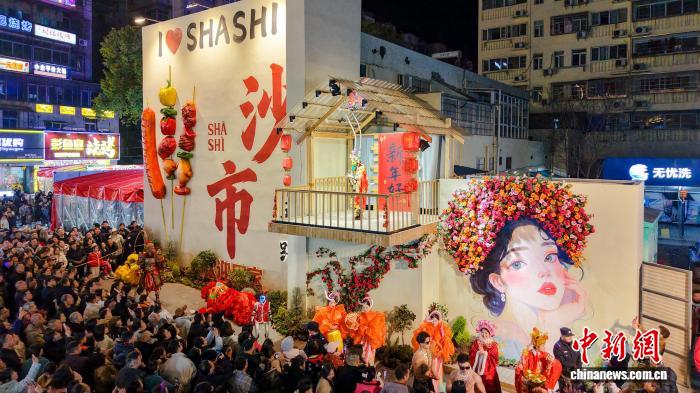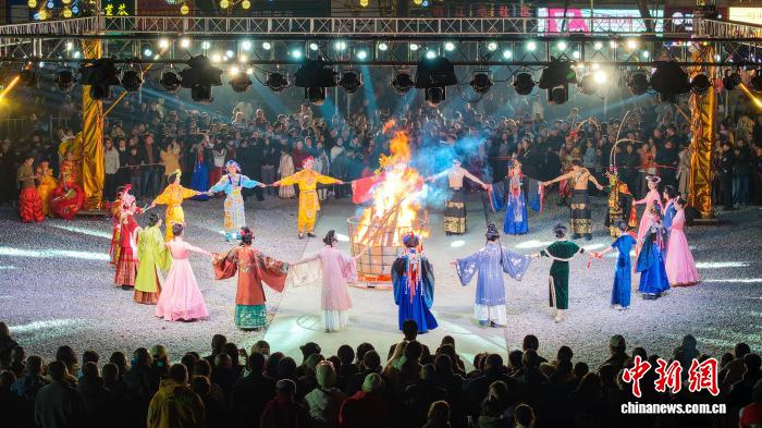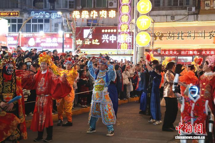 湖北荆州:民俗巡游闹新春 篝火晚会点亮老街年味